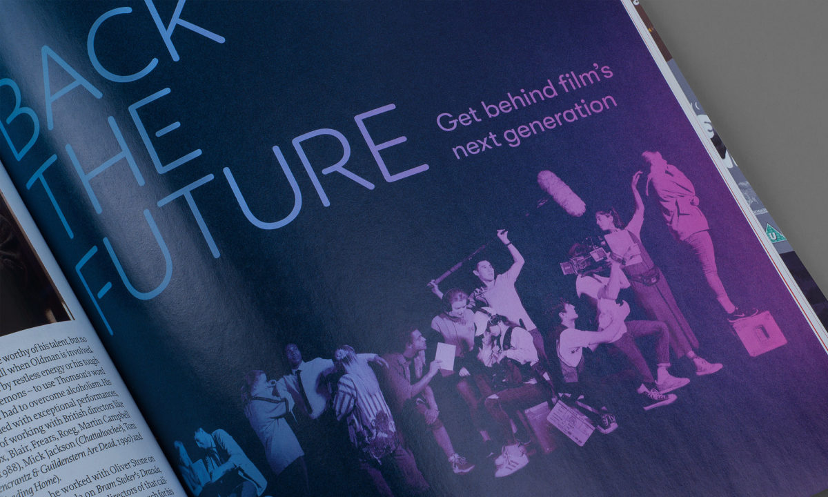 We decided to bounce off one of film’s best-known titles to establish the idea of ‘backing’ as a supportive concept. This was reinforced with a key visual showing the possibility of future filmmakers progressing thanks to funds raised. Our colour palette was the final element added.