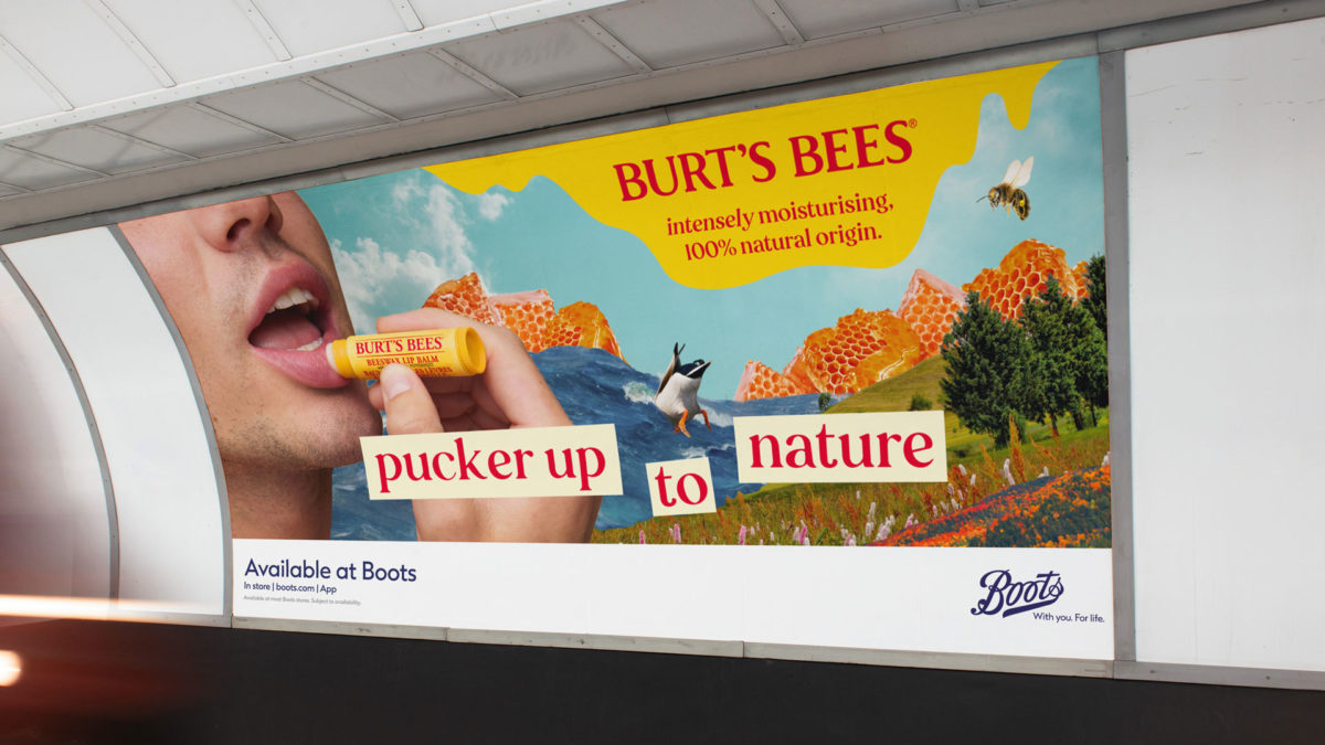 The best thing about Burt’s Bees is the genuinely natural ingredients. Breathable beeswax, not greasy petroleum like a lot of lip balms out there. Market research showed an audience thirsty for moisturisation, so our campaign platform needed to connect ‘nature’ with ‘moisture’.