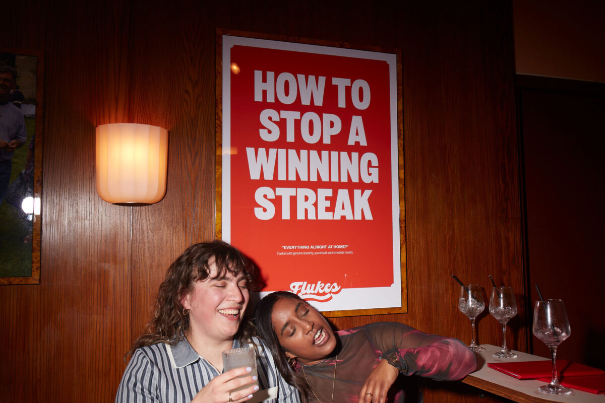 The name Flukes worked because it puts fun before skill, promising a night of haphazard glory. The mild chaos implied was felt to be the exact thing our target audience of busy London friend groups and work crews was craving. Silly time together. Making fuzzy memories.