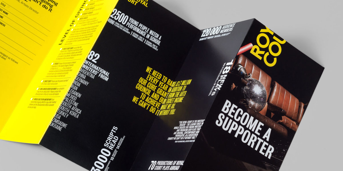 Lovers were invited to sharpen up the Royal Court’s brand identity. If you run a cutting edge organisation you can’t afford to look tired. Embracing a newly defined positioning: “playing on the edge”, we were encouraged to build a bold, boundary-pushing new identity.