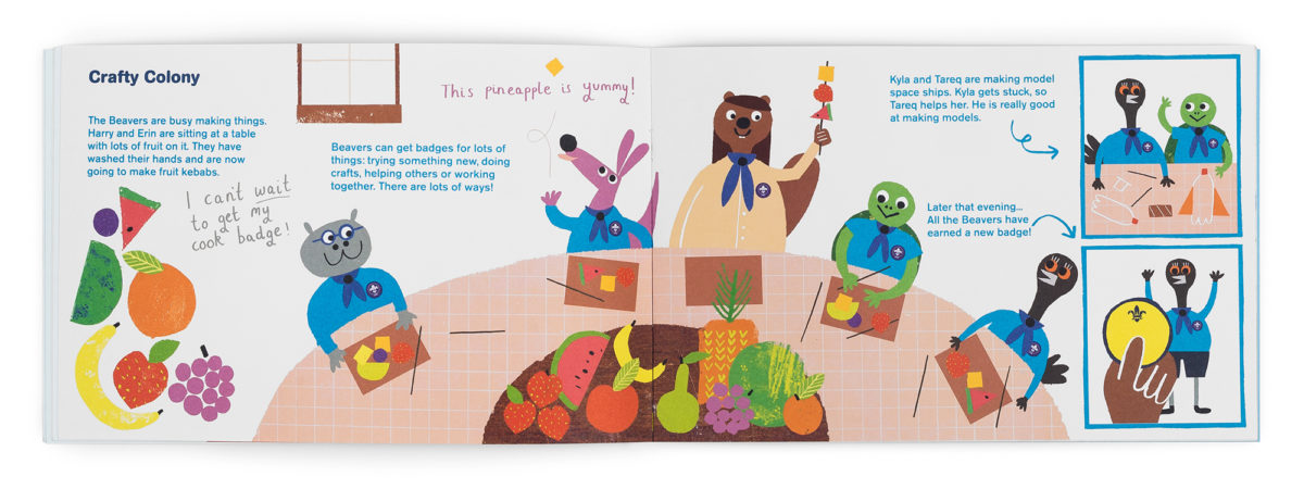 Scouts of different ages lead different lives. If you’re a cub, a little pocket book comes in quite handy. But if you’re a little beaver scout you’re more interested in storybooks that sit well across two adjacent laps. We designed our formats accordingly, tailored by age.